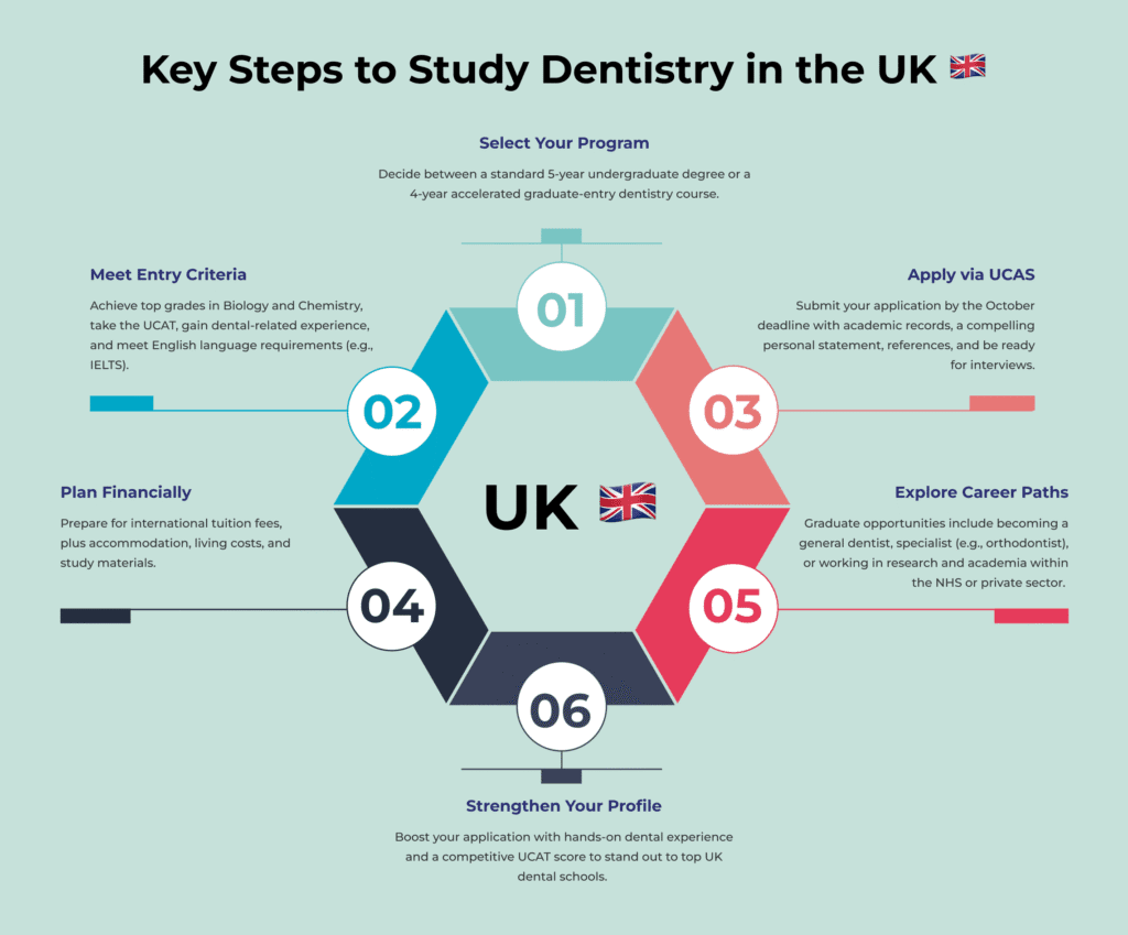International students need a UK Student Visa to study dentistry. Key steps include: